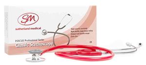 The Focus™ range of stethoscopes is a professional series of stethoscopes designed to provide ideal aural quality within the hospital or specialist environment. The Focus™ Classic stethoscope features a new design chrome plated zinc alloy chest piece and a spare pair of ear pieces.