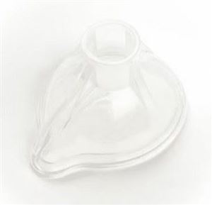 The e-chamber Mask is made of silicone and is structured to provide a good quality seal, yet not collapse easily, or to be too rigid. The anatomical shape of the mask helps create this optimal seal which is required to ensure maximum medication delivery.