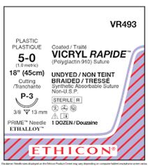 VICRYL RAPIDE SUTURES 5.0 13MM 3/8 CIRCLE P-3 45CM 12'S VR493