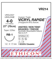 VICRYL RAPIDE SUTURES 4.0 17MM 1/2 CIRCLE RB-1 70CM 12'S VR214
