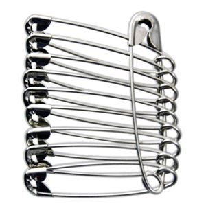 Safety pins are commonly used to fasten pieces of fabric or clothing together.