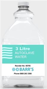 - Autoclave water comes in 3L bottles, for use with autoclaves