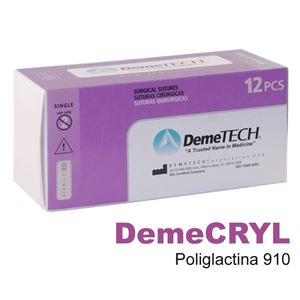 DemeTECH's Polyglactin 910 has found to be nonantigenic and eliciting only mild tissue reactivity during the absorption process. DemeTECH's Polyglactin 910 sutures are available violet and colorless.