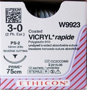 VICRYL RAPIDE SUTURES 3.0 19MM 3/8 CIRCLE PS-2 75CM 12'S W9923