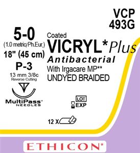 VICRYL PLUS SUTURES 5.0 13MM 3/8 P-3 45CM 12'S VCP493G ( Previously J493G )