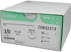 Dafilon© is a non-absorbable synthetic monofilament suture made of polymers polyamide 6/6.6 (dyed blue or undyed) or polyamide 6.6 (dyed black). Dafilon© blue and Dafilon© undyed are indicated for the closure of superficial wounds and plastic surgery. Dafilon© blue is also used in neurosurgery. Dafilon© black is used for microsurgical and ophthalmic purposes.