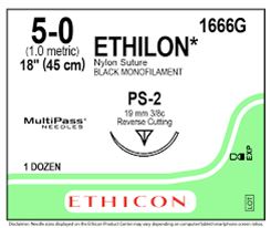 ETHILON SUTURES 5.0 19MM 3/8 CIRC PS-2 45CM BLACK 12'S 1666G