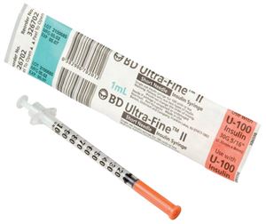 BD ULTRAFINE II INSULIN SYRINGE & NEEDLE 1ML 29G X 12.7MM 100'S 326719
