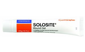 SoloSite Gel creates and maintains an optimal moist wound environment as it desloughs and debrides. Unlike gels formulated with water miscible polymers, SoloSite?s water swellable? polymer remains gel-like until saturated, so it stays in the wound longer and requires fewer dressing changes.