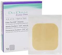 DuoDERM Extra Thin CGF Dressing is a hydrocolloid dressing indicated for the management of lightly exuding wounds. It combines a unique ConvaTec hydrocolloid formulation that distinguishes it from other hydrocolloid dressings and a vapour-permeable outer film to provide an occlusive moist environment.