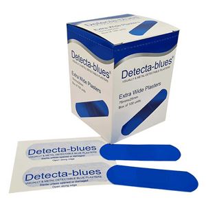 Blue Metal Detection Plasters - Waterproof - 76mm x 25mm - 100's.Visually & Metal Detectable PlastersExtra Wide