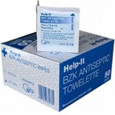 Help-IT BZK Antiseptic Towelette Alcohol Free Wipes.